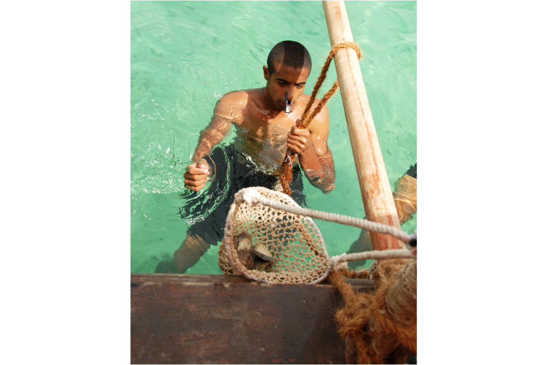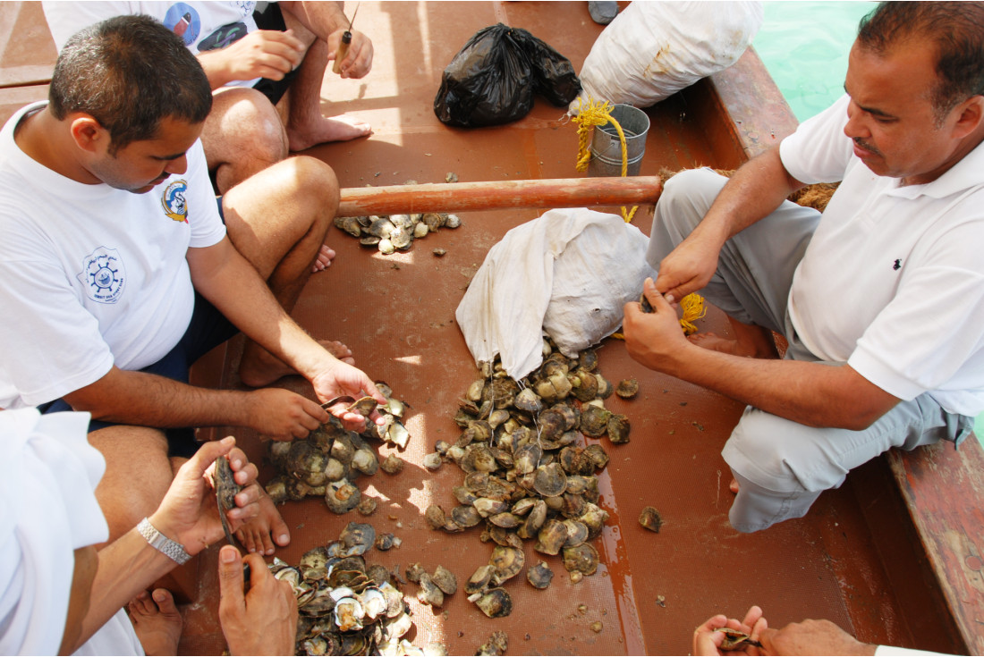 On board a small speed boat the journey to the coral reef near Shaikh Ebrahim Island the eight of us were excited at the prospect of maybe finding a pearl. The men snorkelled for the oysters and on board me and three other women did our best to open them - and therein lies the rub!