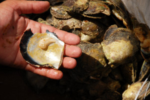 Out of several hundred oysters and hours later some of us managed to find several tiny little pearls. The one I found was minute, but still it was a pearl.