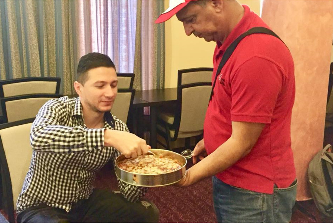 After breakfast in the hotel there was a conference in the hotel and during their break they were surprise to see our car and they asked us where we are from. We started to talk to them and gave them copies of our Bahrain and Chios book as well as let them tried our Bahraini sweets ( Halwa ). They wished us safe trip back to Bahrain.