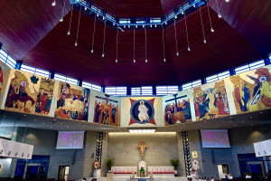 Awali (Agenzia Fides) - The Cathedral of Our Lady of Arabia (OLA) in Bahrain is a beacon of spiritual light and hope for Catholics. It is not only a place of worship but also a symbol of peace and unity. In a statement sent to Fides, the Vicariate Apostolic of Northern Arabia describes the traditional pilgrimage to the Holy Door of the Cathedral in Awali, the largest Catholic church on the Arabian Peninsula. It is a symbolic entrance that opens on the occasion of the jubilee years of Saint Arethas and Companions, the martyrs. On October 24, 2023, the Catholic Church in the Arabian Peninsula began the celebrations of the liturgical feast of the martyrdom of Saint Arethas and his companions with the opening of the Jubilee Year in all parishes, which will end on October 23, 2024 (see Fides, 20/10/2023). Passing through the Holy Door is seen as a metaphorical passage from sin to grace, from darkness to light. Pilgrims from all over the world come to pass through the Holy Door and ask for a plenary indulgence. It is a unique and powerful experience for all who undertake it, and a spiritual as well as physical journey that requires participants to reflect on their lives, seek forgiveness for their sins and renew their faith in God. The pilgrimage strengthens the bonds of brotherhood and reminds everyone of their common mission to love and serve God through an experience of spiritual renewal and transformation. "It is a time of grace and blessing," the message reads, "a time to open one's heart and mind to the transforming power of God's grace and to pass through the Holy Door into a new and brighter future". "As the pilgrims pass through the Holy Door," the note concludes, "they stop at eight stations, including the icon of Saint Arethas, the Chapel of Our Lady of Arabia, the baptismal font, the high altar, the Mystical Crown (16 icons), the Bishop's Chair, the Chapel of Reconciliation and the Chapel of the Blessed Sacrament.